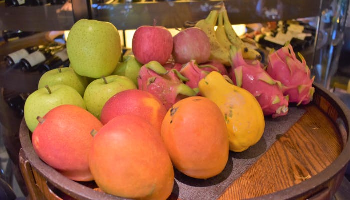 その他に、カウンター前には、オブジェのように飾られた、トロピカルフルーツなどもあります。こちらのフルーツは、お願いすると、カットしてテーブルまで運んでくださいます。