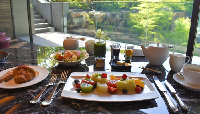 朝食は、半ビュッフェスタイルで、メインの卵料理はオーダー制。フルーツは、ワゴンサービスで提供されます。