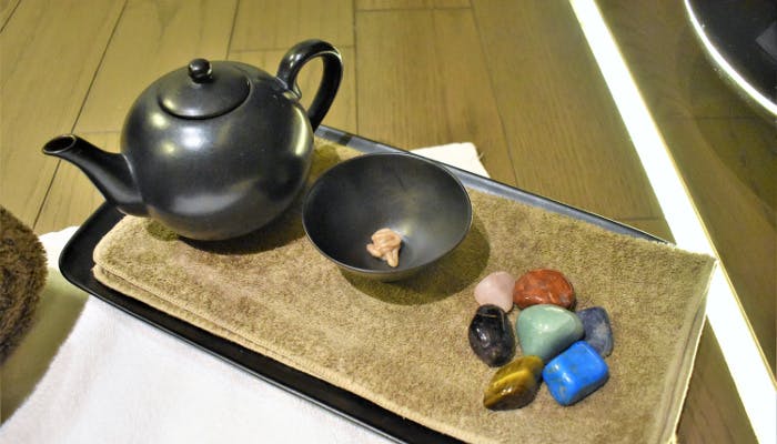 抗酸化作用のある宇治のお茶をお湯に注ぎスクラブします。途中で冷めてしまわぬよう、熱いお湯を足してくださる配慮も嬉しいですね。この時に、セラピストの方とある程度コミュニケーションが取れると、その後のトリートメントをより安心して受けることができるので、お勧めです。