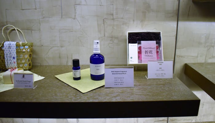 スパのレセプション前には、ESPAを始めとするスパプロダクツが売っていますが、その中に、館内のエントランスで香っているRCKオリジナルフレグランスも並んでいました。ここでしか手に入らないオリジナルですので、ご友人へのお土産や、滞在の記念にも良いと思います。