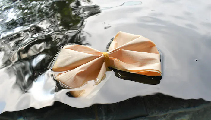 お風呂に浮かべると檜の香りが漂う「ひのきリボン」は入浴剤代わりに。ゆらゆら揺れる動きを追って、ぼ~っとリラックス。心が休まります。