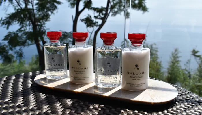バスアメニティは「ブルガリ」。シャワー室、洗面台それぞれに1セットずつと、合計3セットも用意されていました。