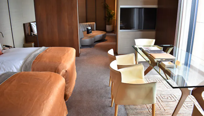 1階のコーナースイートは、客室面積72平米。これにプラスして、リビング&バスルーム、ダイニング&ベッドルームの2部屋それぞれにテラスがありますので、平米数以上に広く感じます。