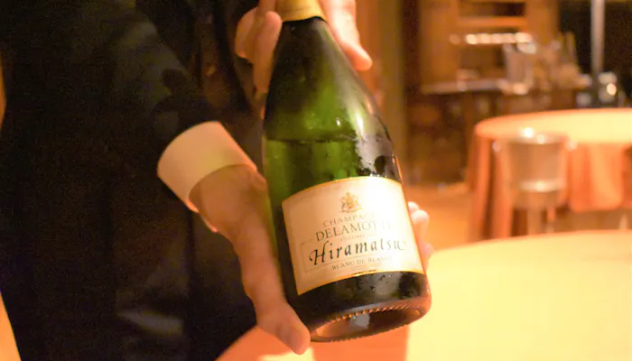 ひらまつオリジナルのシャンパン「ドゥラモット ブラン・ド・ブラン」をいただきます。