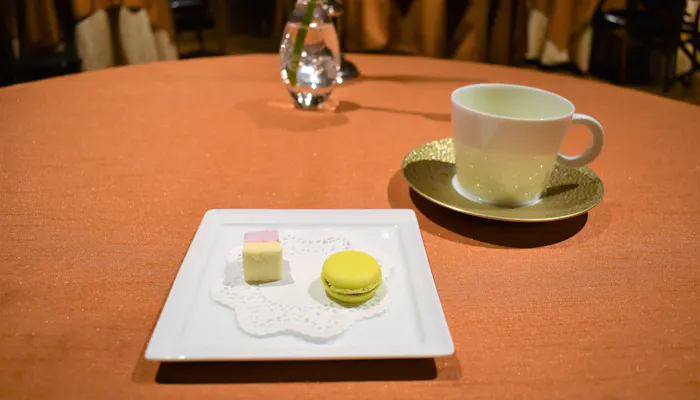プティフールとハーブティーをいただいた後は、スタッフの方々がエレベーター前までお見送りしてくださいました。