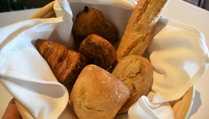 パンは、クロワッサンはじめペストリー類の他、ハード系パンも3種類用意されています。エシレのバター(シールをはがしやすいように、少し開けてくださっています)、アラン・ミリアのジャム、地元産蜂蜜と共に、いくつでも食べられてしまいそう。