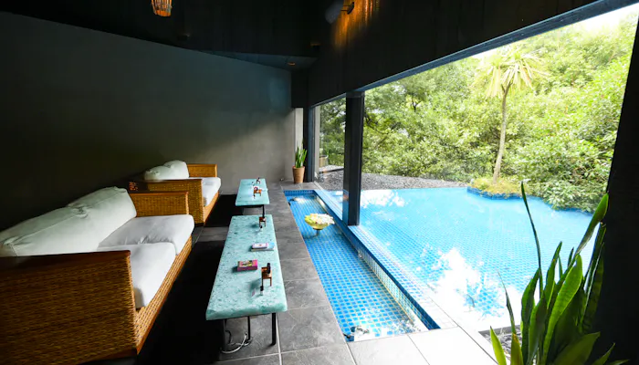 わかりやすく、うちなりの特色の出しやすいカラーの建物にしたかったんですね。実は、「箱根吟遊」を作ろうと思った時に旅館を殆ど見て回りませんでした。見てしまうと、素敵な施設のかっこいい部分を真似してしまうから。代わりにバリに2週間ほど滞在し、同規模のヴィラやホテルがどのように景色を見せているか、周りの環境との調和をどう図っているか、調度品をどう配置しているかなどを参考にしました。