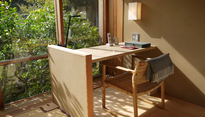 他のお部屋と同様に、広縁には書斎スペース。