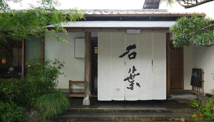 温泉街から少し山間を登った中腹に、ひっそりとたたずむ「石葉」。先々代が所有する別荘だった建物を生かしたお宿は、宿名が大きく書かれた白い暖簾が目印です。