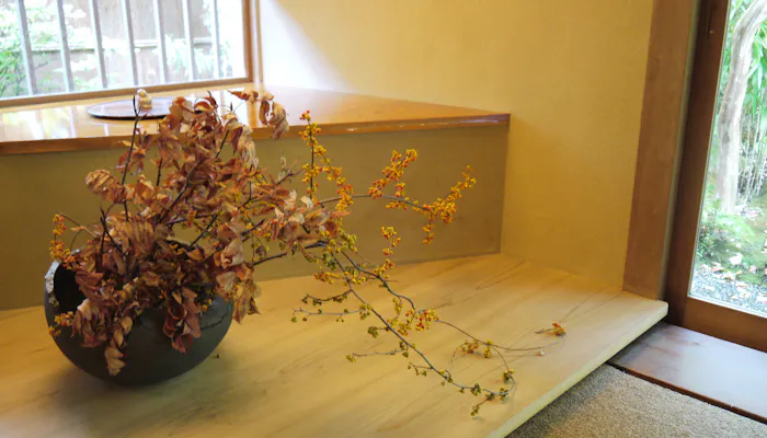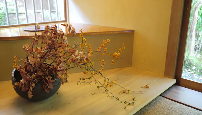 日本旅館の情緒が漂う8帖の和室には、さりげなく今日の野の花が飾られます。