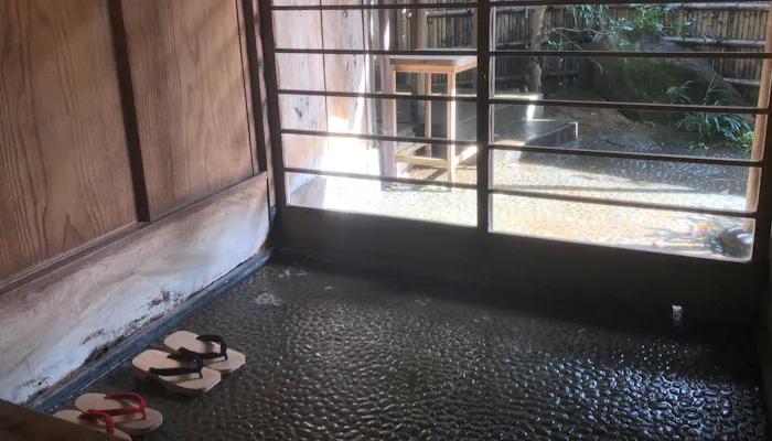 今回は、一休.comの中でも特に人気の高い離れ「草楽庵」、本館の「岩戸」と「十国」を案内していただきました。