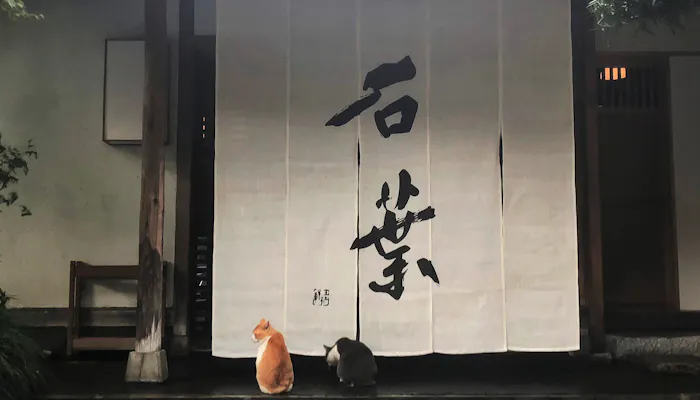 お宿を後にするとき、2匹の猫に遭遇しました。
