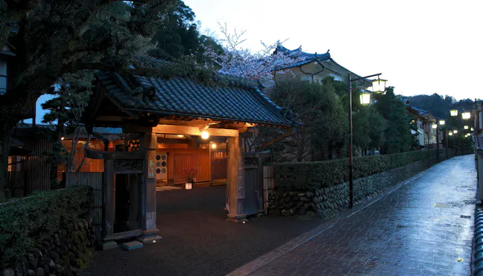 伊豆は修善寺の北又川沿い。表通りから1本中に入ると石畳の細い道が続きます。そこに突如として現れる「あさば」の門。この門をくぐった途端、あたりの空気がさっと変わる…。多くのゲストがそう感じるように、あさばには独特の空気が満ちています。