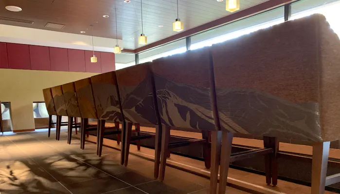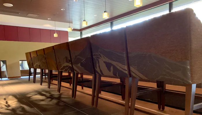 蔵王連峰をモチーフに西陣織で設えられたチェア。