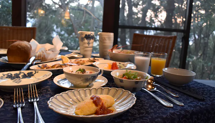 わざわざ行く価値があると思う理由は、ご家族で料理を一緒に作る「ファミリー感」。彼のお父さんが「あかだま食堂」という食堂をやっていたからかな。「食堂」の延長線上にある宿で、魅力を感じました。今は料理を研究し尽くしたフレンチみたいなとがったものが流行っているけれど、緊張感を与えすぎてくつろげない。