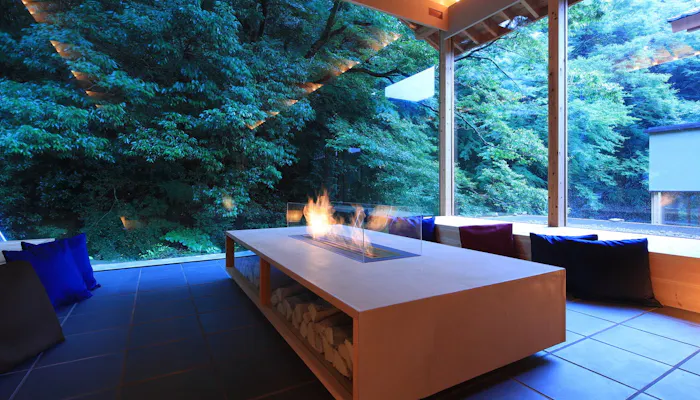 「arcana izu」は、狩野川の渓流を望むオーベルジュリゾート。シンプルなファブリックで統一された客室は、自然を全身で感じるのにぴったりです。全てのお部屋には渓流に沿うよう露天風呂を完備。源泉掛け流しの湯を思う存分満喫できます。