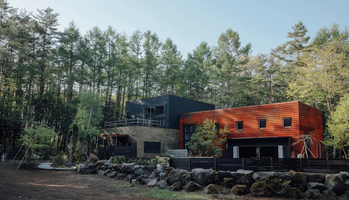 富士山麓の広大な森の中に佇む「yl&Co.Hotel in Mt.Fuji」。敷地面積は3,141平米を誇り、開放的なテラスではBBQなどを楽しむことができます。