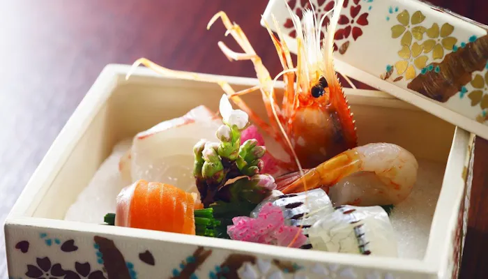 夕食にテーブルを彩るのは、宿自慢の京風会席。目でも舌でも味わえる一品は、料理長自ら選び抜いた日本酒や焼酎とともにいただくのがおすすめです。季節感あふれる料理とこだわりのお酒で、贅沢な夜のひとときを。