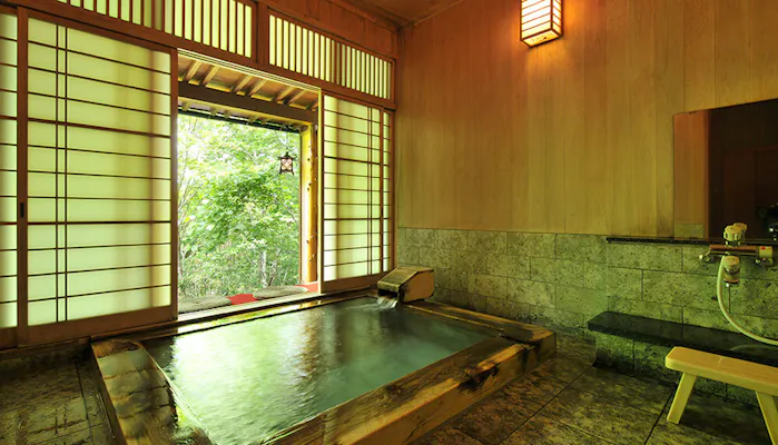 すべての部屋に源泉掛け流しの半露天風呂が付いています。