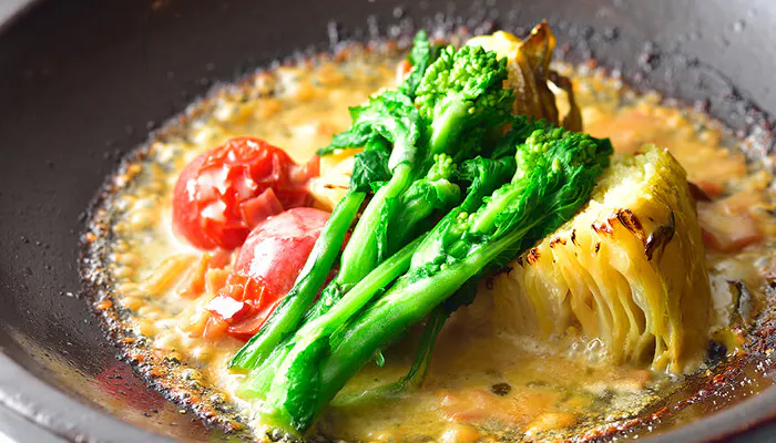 この宿は野菜メインの創作フレンチを得意としていますが、「野菜がこんなに濃厚なんて」と驚く人がほとんど。特に、看板料理のキャベツのステーキは圧巻のおいしさです。寒暖差の激しい地で栽培されたキャベツの甘さ、そのキャベツをステーキに仕立てる独自性。これを食べたくて訪れる人が大勢いるとか。