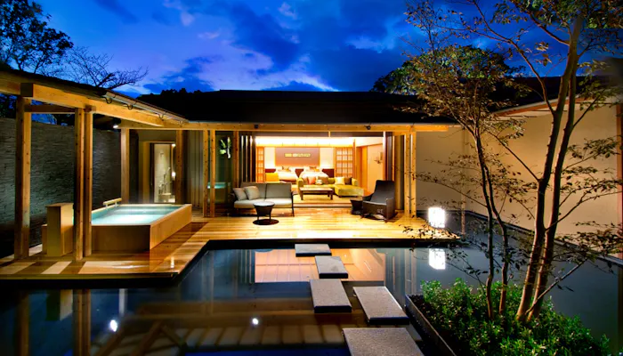 大人のラグジュアリーリゾートをテーマとしたヴィラ客室には、ゆったりとしたルーフデッキの先に露天風呂が。別荘のようなプライベート空間で極上の湯浴みをたっぷりと堪能しましょう。