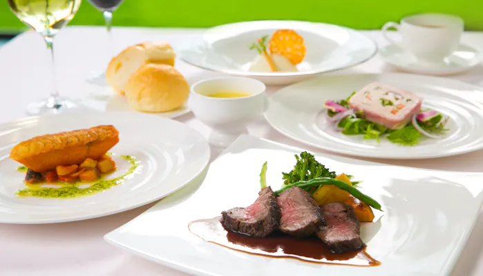 夕食は洋食のフルコース。朝食は和食と洋食から選べます。