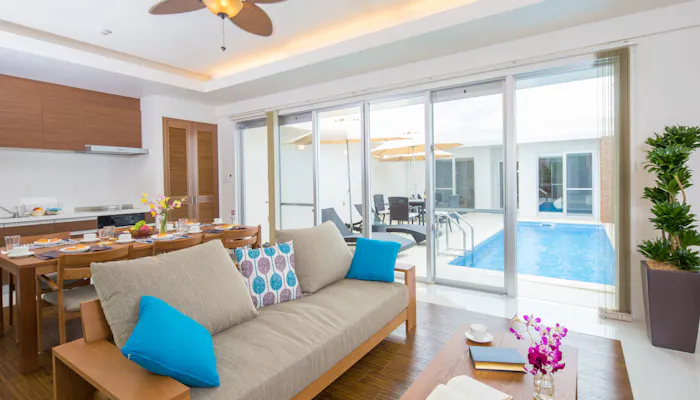 独立型ヴィラタイプのため、プールが外から見えにくい造りになっているのもポイント。宿の近くにはビーチもあるので、愛犬と砂浜を散歩するなど海を間近に感じながら過ごすのもよさそうですね。人気スポットへのアクセスも良好で、観光の拠点としてもぴったりなロケーションです。
