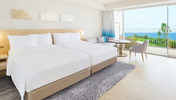 ペットと滞在できる「ドッグフレンドリールーム」は、2つのタイプをご用意。どちらもプライベートバルコニーが配置されており、移ろいゆく空と海の絶景を眺めることができます。ラグジュアリーな空間で、愛犬と共に心穏やかなホテルステイを満喫してみては。
