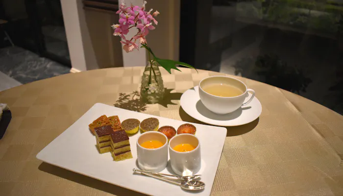 オペラ、フロランタン、クッキー2種にプリンと盛りだくさんです。ボリューミーなコースのため、ミニャルディーズはお部屋に届けてもらうこともできるそうです。