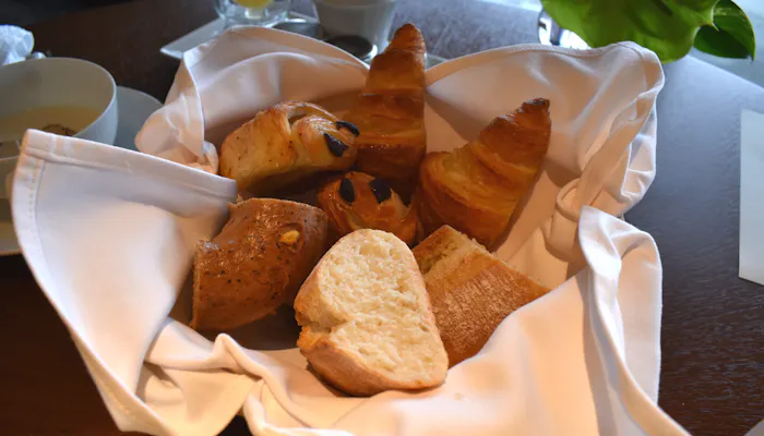 と、ここでパンバスケットの登場!熱々で良い香り。