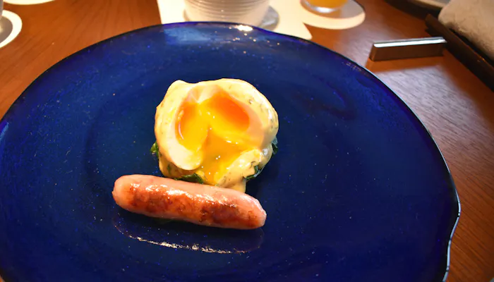 半熟卵を割る瞬間ってどうしてこんなにもワクワクするのでしょうね。中はもちろんトロトロ。アグー豚のソーセージもジューシーで物凄く美味しい。