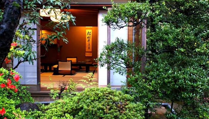 約3,000坪の敷地を有する料亭旅館「あたみ石亭」。日本全国から銘石と石灯篭を集めた石庭園と、点在する数寄屋造りの客室が、侘び寂びの世界を生み出しています。食事は、二十四節気を料理に映す“石亭懐石”を堪能しましょう。