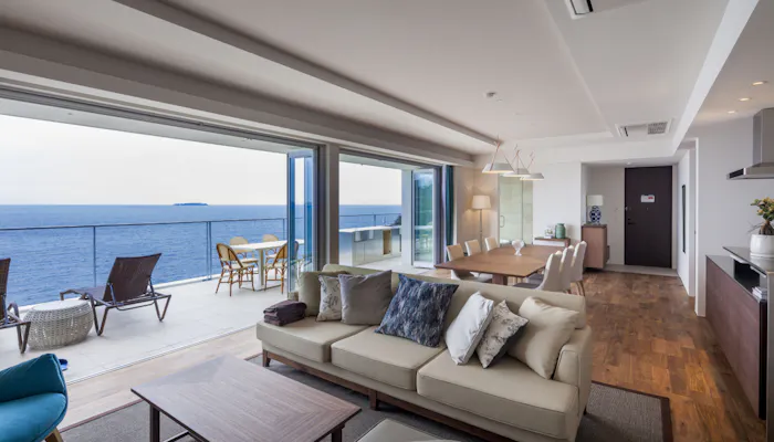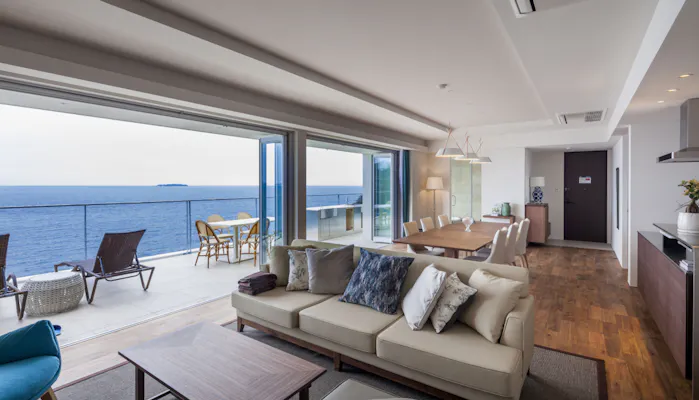 2018年5月に誕生した「UMITO VOYAGE ATAMI」は、フルキッチンとランドリーを備え、別荘のように気ままに過ごせるコンドミニアムスタイルの宿。客室は、全室オーシャンビューで、景色を遮る建物は一切ありません。