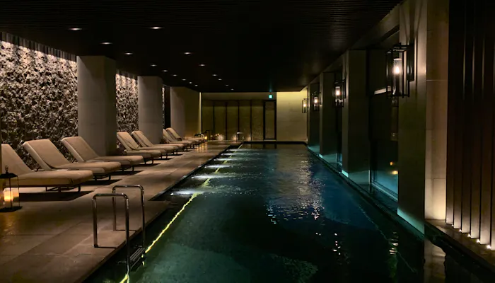 このホテルの魅力と言えば、静かで綺麗なプール。ライトアップされたロックガーデンが見えるのも風情があって良いですね。