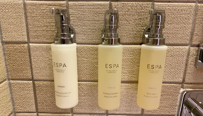 備え付けのシャンプー・コンディショナー・ボディウォッシュと化粧品が「ESPA」なのは高ポイントです。