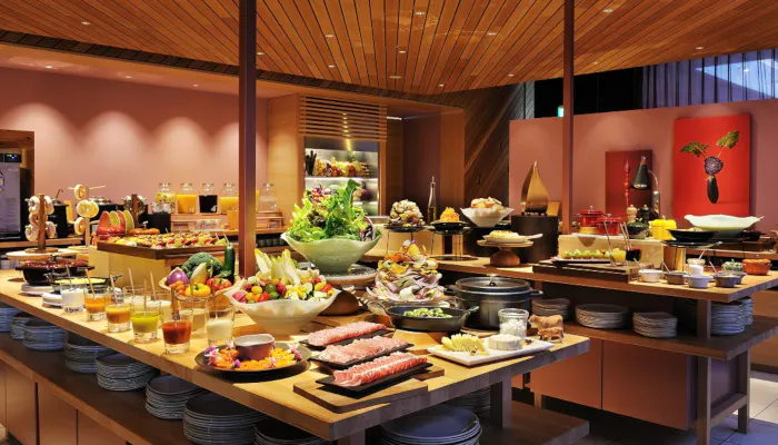 「ビュッフェレストラン」は、野菜をテーマに多彩な料理が並びます。美味しくて身体が悦ぶヘルシーなビュッフェなら、罪悪感なく思う存分いただけそうですね。
