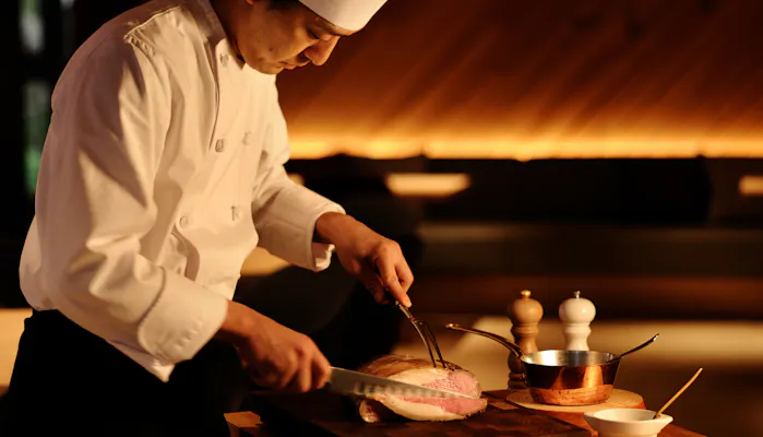 施設には、健全な空腹を満たす2つの魅力的なレストランが備わります。その1つ「メインダイニング OTTO SETTE NASU」は、「アグリガーデン」で収穫されたばかりの野菜やハーブをふんだんに用いたイタリア料理をコースでいただけます。ひと口噛むごとに味の濃い食材の旨味に、ときめくこと必至です。