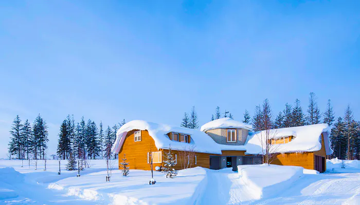 美しい丘の景色で知られる北海道美瑛町に佇む「美瑛ヴィラ瑠辺蘂ヒル BIEI Villa RUBESHIBE HILL」。木と煉瓦の造りにギャンブレル屋根の北国らしい建物が、自然豊かな風景に溶け込んでいます。プライベートが約束された一棟貸しスタイルながら、共有のラウンジエリアではウェルカムドリンクやアフタヌーンティー、アペリティフを楽しめるのも嬉しいポイントです。