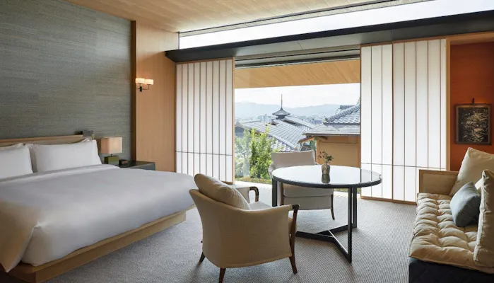 京都屈指の観光名所、世界遺産・清水寺へ至る二寧坂に面したロケーション。東京・新宿での開業から25年の時を経て、日本で2軒目の「パーク ハイアット」ブランドのホテル「パーク ハイアット 京都」が誕生。創業142年の伝統を誇る京料亭「山荘 京大和」の敷地内に佇むホテルということもあり、京の街並みを見下ろすことができるだけではなく美しい庭園も魅力です。唯一無二の“京”空間はいかがでしょう。