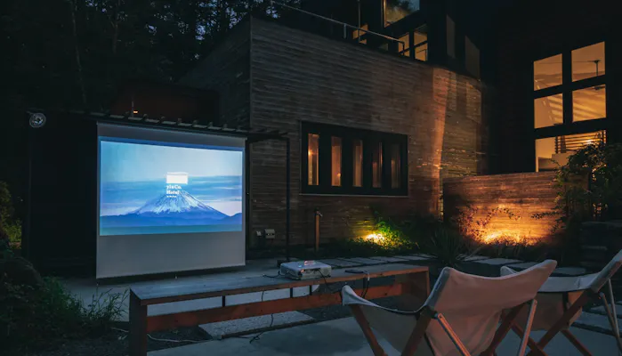陽が傾いてきたら、屋外プロジェクターを用いて野外シアターを愉しむのもいいですね。お気に入りの映画や懐かしい映像を共有する時間は、心をほっこりさせくれるはず。いつか見た映画の主人公のような、優雅で心温まるひととき叶えてください。