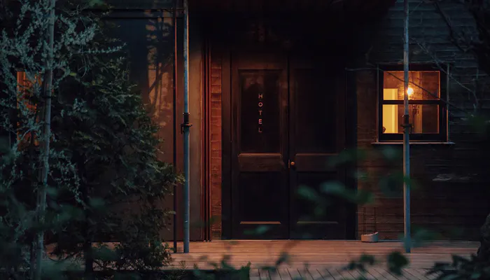河口湖のほど近くに立つホテル「yl&Co.Hotel in Mt.Fuji」。樹々の合間から、スタイリッシュな建物が見えたとき、ときめきを覚えることでしょう。元は撮影スタジオだった施設を、スモールラグジュアリーホテルへ再生させたと聞けば納得。端正に作り込まれた敷地に入るや否や、非日常が始まります。