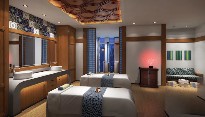 フィットネスエリアにはスパと24時間利用できるジムを完備。特にスパは木の温もりあふれる4つの個室を備えていて、心地よいトリートメントが受けられます。