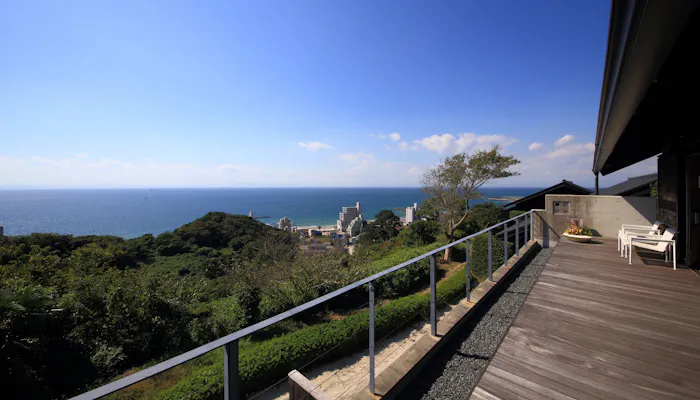 西伊豆・堂ヶ島にある「繭二梁」は、「世界ジオパーク」に認定された伊豆半島の絶景を堪能できる宿。1組のゲストのために、渡り廊下で繋がる2つの棟の2つのお部屋が用意され、今までにない優雅な滞在ができると好評です。