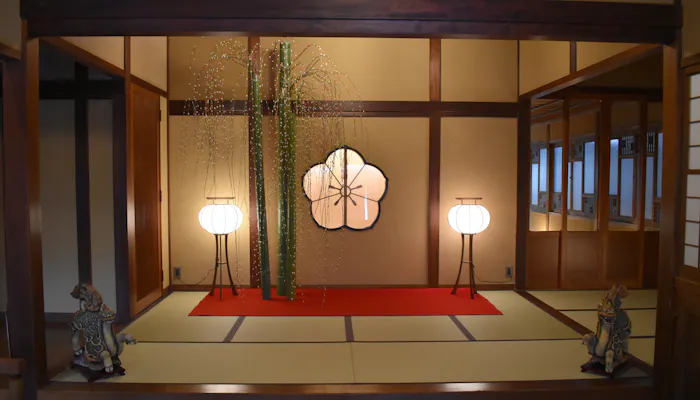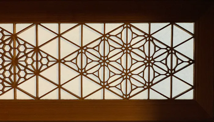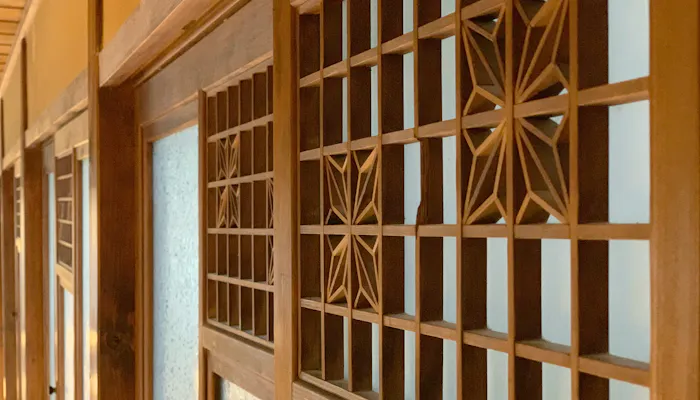 組子細工もお部屋によってさまざま。この施設は5年の歳月、当時の総工費が約25万円、現在の価値に換算すると数十億円もの費用をかけて建てられたとか。一つひとつお部屋の設えが異なるのも、当時の大工さんが、自分が考える最高の設えをほかの大工と競いながら作ったからだとか。そのため、細かい部分で今では考えられない工夫が見えるそうです。