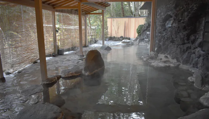 「星の湯」は、渓流沿いにあるため、渓流の音に耳を傾けながらの湯浴みが叶います。
