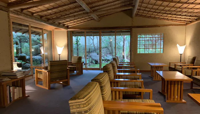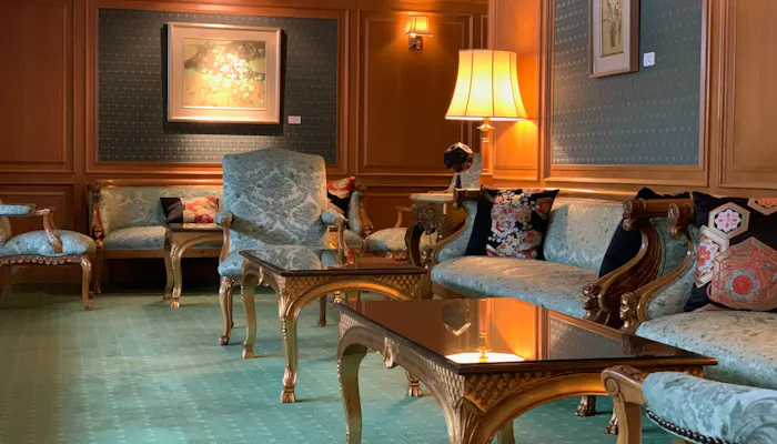 温かい照明で灯されたロビー。背筋が伸びながらも、どこか懐かしさを感じる雰囲気にホッとする寛ぎを感じます。