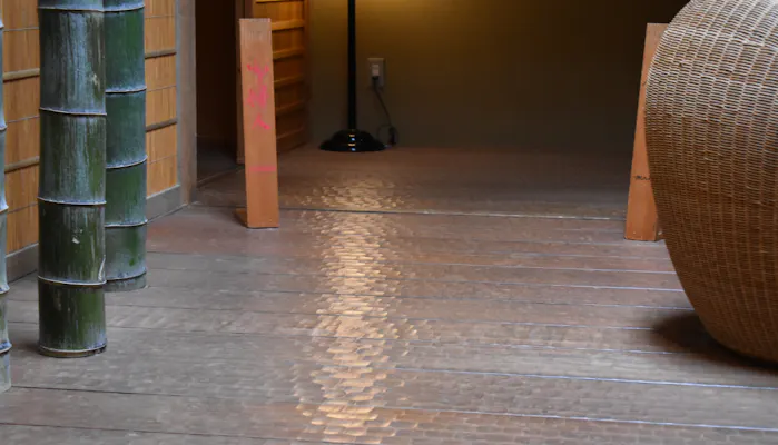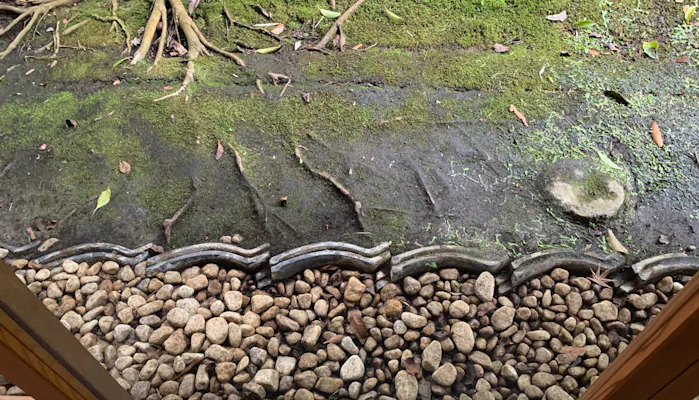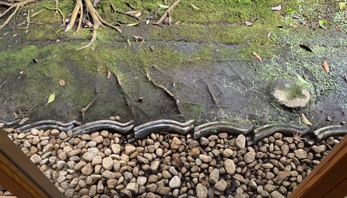 いかがでしたでしょうか。職人のこだわりが詰まったお宿「柳生の庄」。ロビーの窓から下を覗くと、お庭と建物の間が桟瓦で根止めされていました。この目立たないところにも風情を感じさせる細かいこだわり。もっとお宿には職人たちのこだわりが隠れています。ぜひ実際に宿泊されて、京懐石を礎とするお料理に舌鼓を打ちながら、探してみてはいかがでしょう。