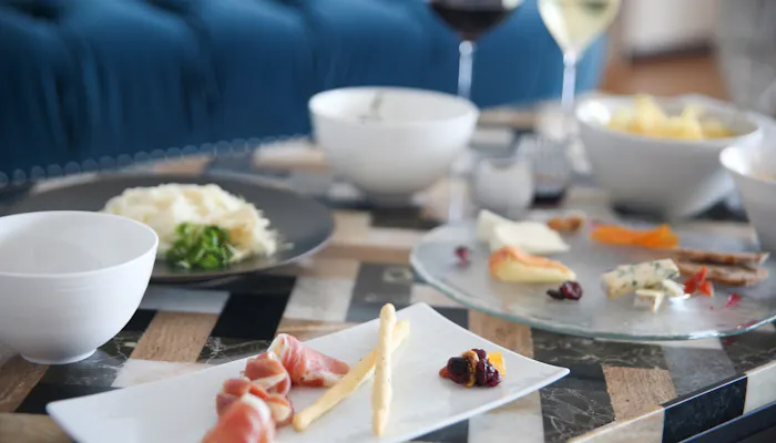 夕朝食をはじめ、冷蔵庫内のドリンクやアイスクリーム、夜食も宿泊料金に含まれるオールインクルーシブスタイル。お洒落な館内着があるので、ドレスコードの心配も要りません。絶景に温泉、充実のサービスを満喫しましょう。