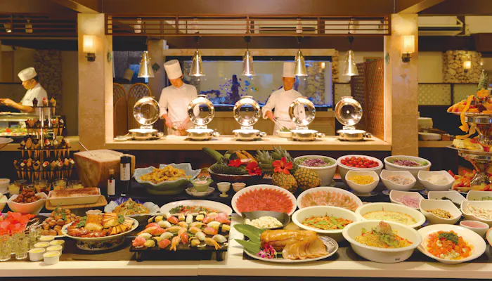 ホテルシェフが地元食材をふんだんに使って腕をふるった自慢の料理をいただき、客室でくつろぐ。夜が明けたら、亜熱帯の気候に育まれた色とりどりの花々の咲き乱れる園内を散策する。