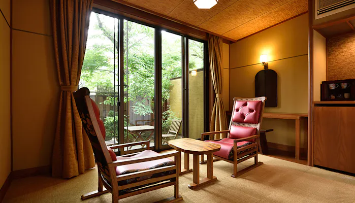 全8室のお部屋は、いずれも露天風呂付。伊香保には、黄金の湯と白銀の湯の2種類の温泉がありますが、客室では白銀の湯をプライベートな空間で満喫できます。隣接する本館「福一」の大浴場では黄金の湯も楽しめるので、ぜひそれぞれの湯を比べてみて。